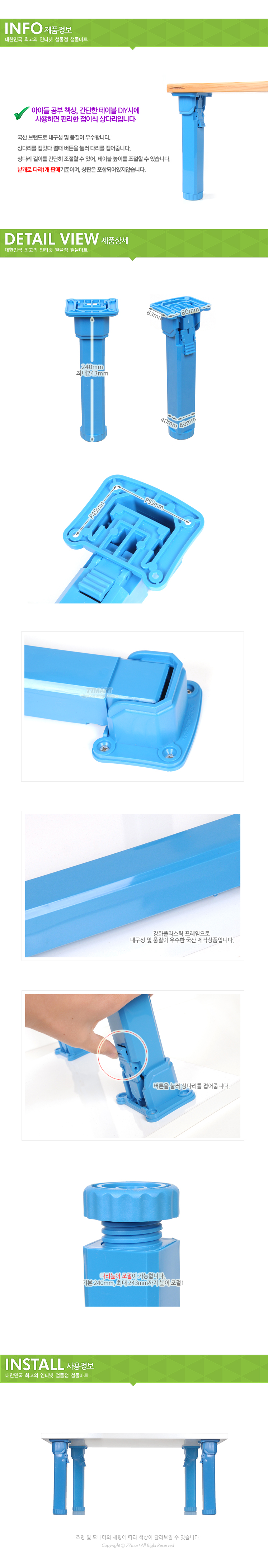: 상다리/ L21-098 높이조절식 블루 (240mm)