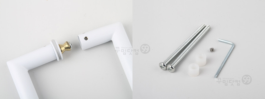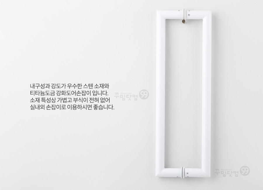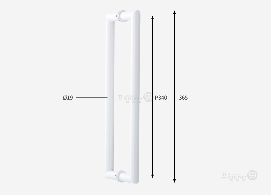 품 명 : 강화유리문손잡이 G209 사각 스텐 화이트 (P340mm/365mm)규 격 : 타공거리 340mm / 총길이 365mm / 굵기 19Φ / 볼트지름 8Φ