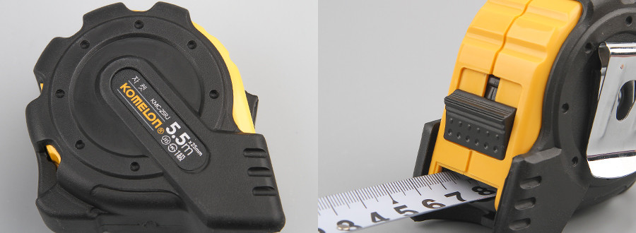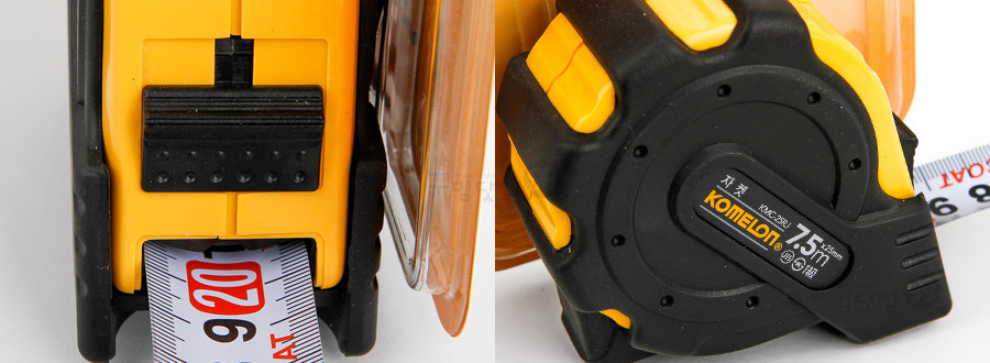- 고무피복 케이스로 충격에 강하고 미끄러지지 않는 견고한 줄자